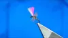Jig Head Indicator. Materials Used; Hook, Fulling Mill Jig Force Size 16 Wing, Pink and White Poly Yarn or Anton Thread, Uni-8/0 Black Rib, Small Silver Tinsel